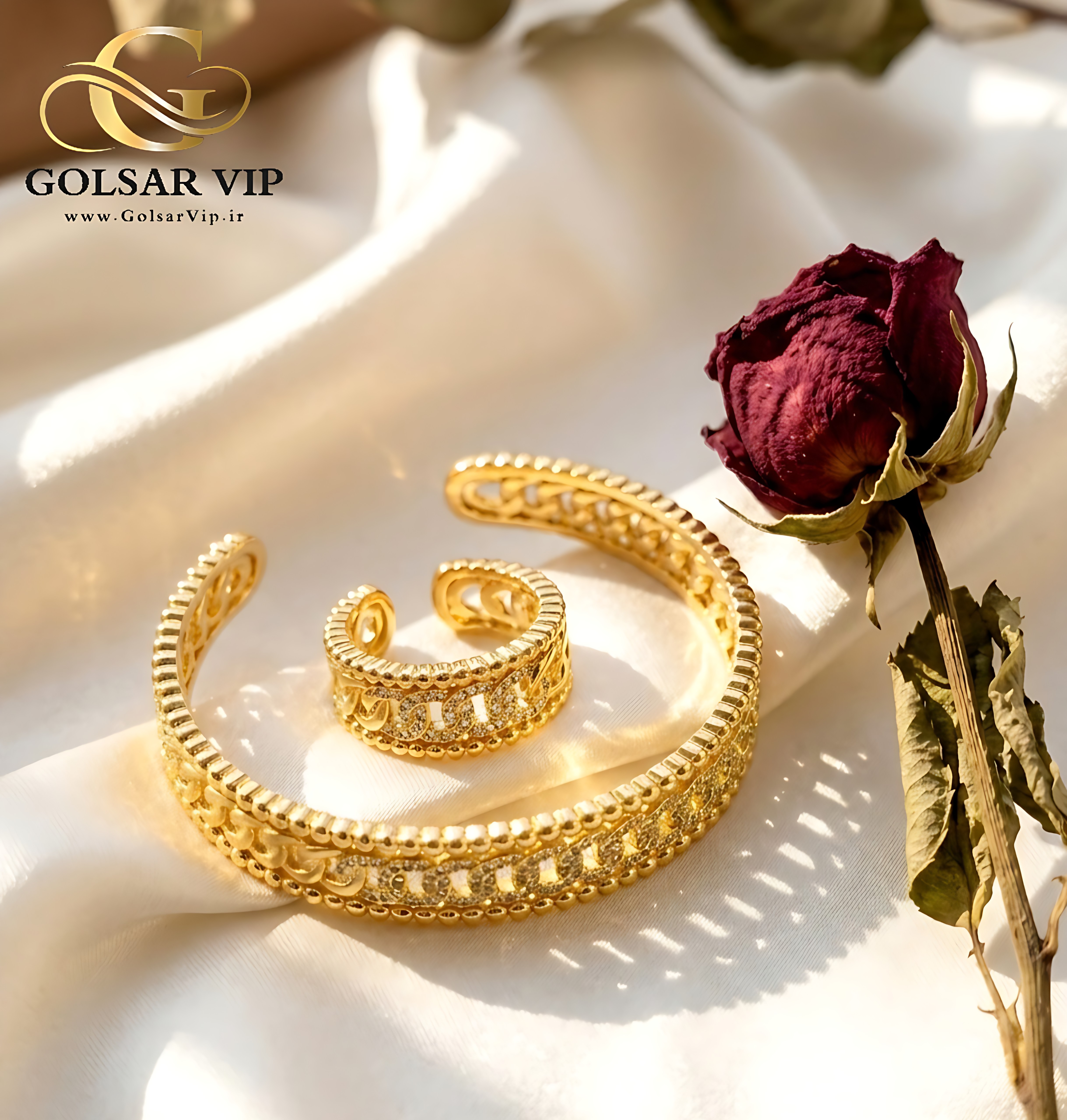 • آلیاژ های که نیم ست های گلسار از مس - روی ـ استیل با پوشش رادیوم و زیورآلات طلایی با آبکاری طلا کیفیت بالا ساخته شده که دوام رنگ بالایی و ضد حساسیت تضمینی به مشتریانش میده ✨