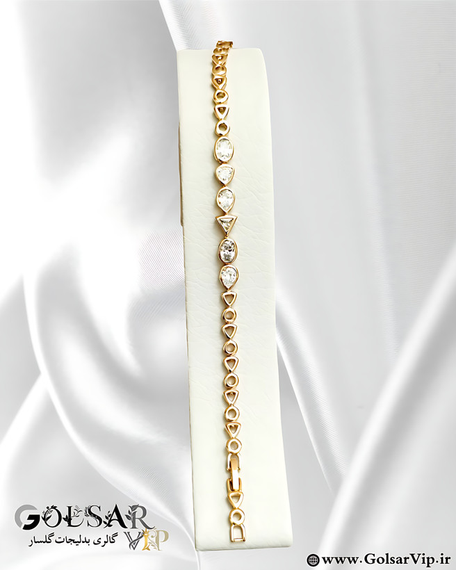 دستبند طلایی طرح پلاک نگینی 2 ژوپینگ - XUPING 🦋