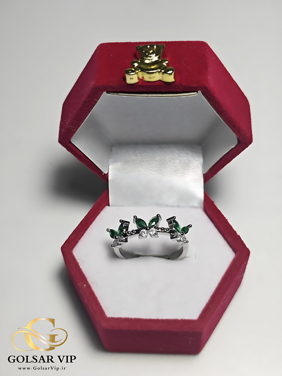 انگشتر استیل طرح پروانه نگین سبز مینیمال 🦋