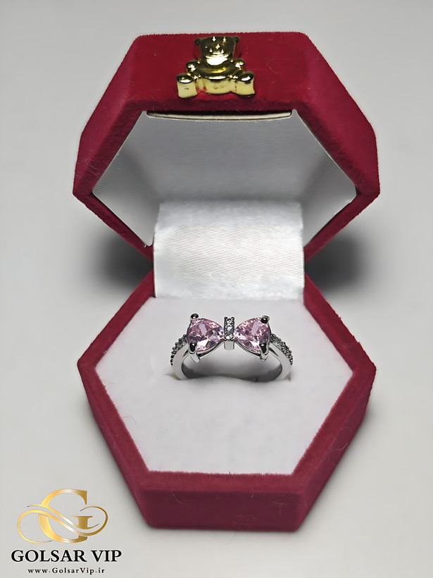 انگشتر استیل طرح پاپیون نگین صورتی فانتزی مینیمال 🦋