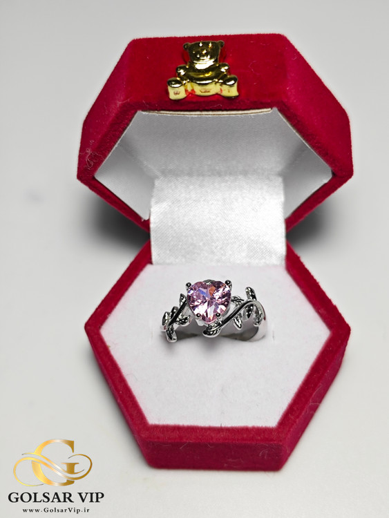 انگشتر استیل طرح قلب شاخه نگین صورتی فانتزی مینیمال 🦋