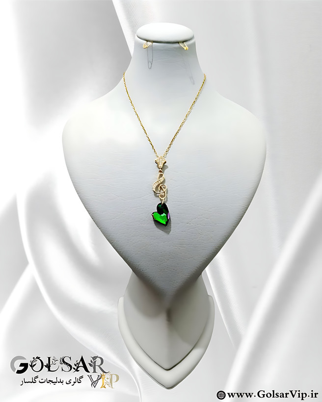 گردنبند مینیمال استیل طرح قلب کریستالی سبز 🦋