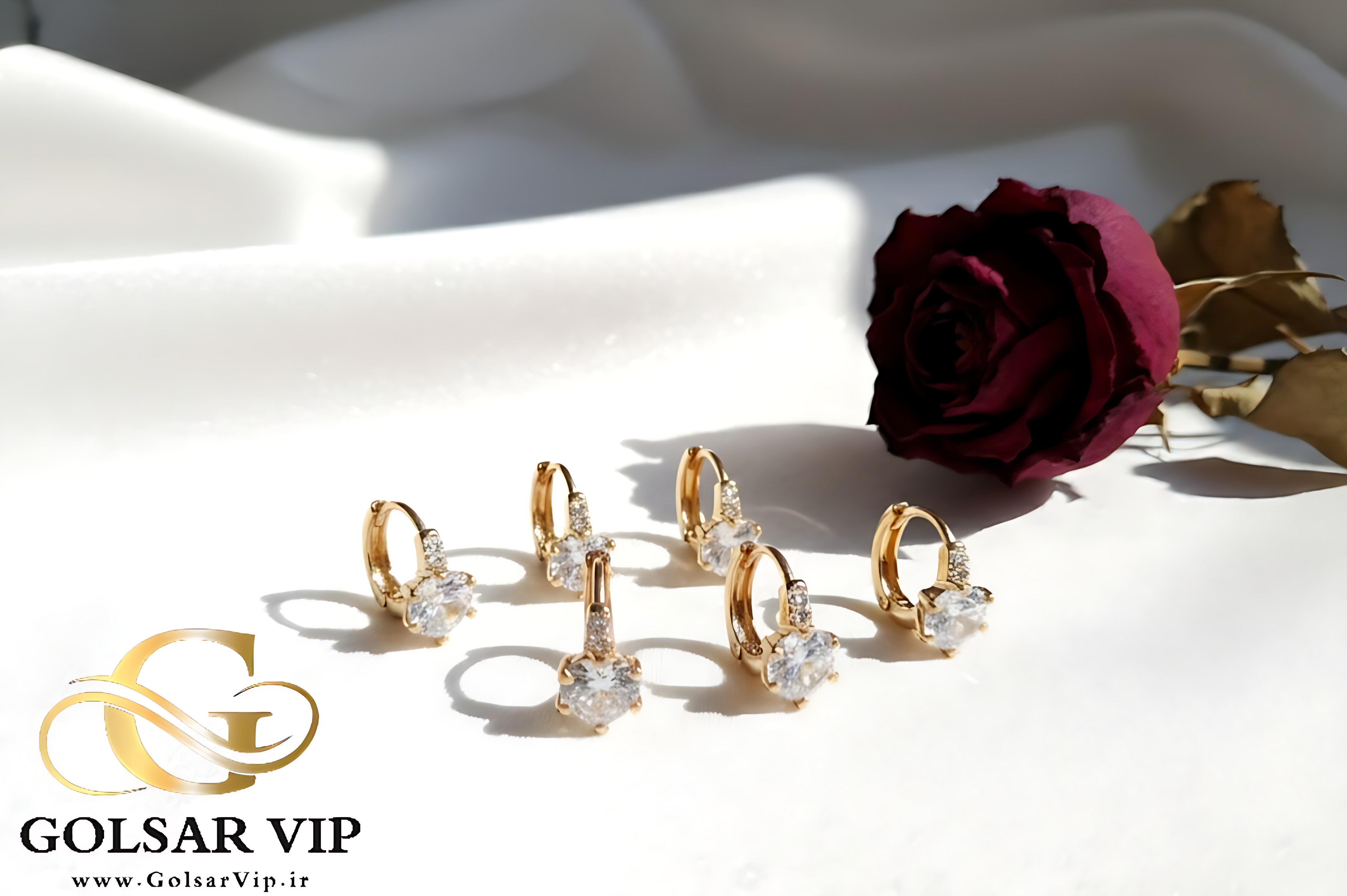 گوشواره رز آویز نگینی ژوپینگ | کد 355
