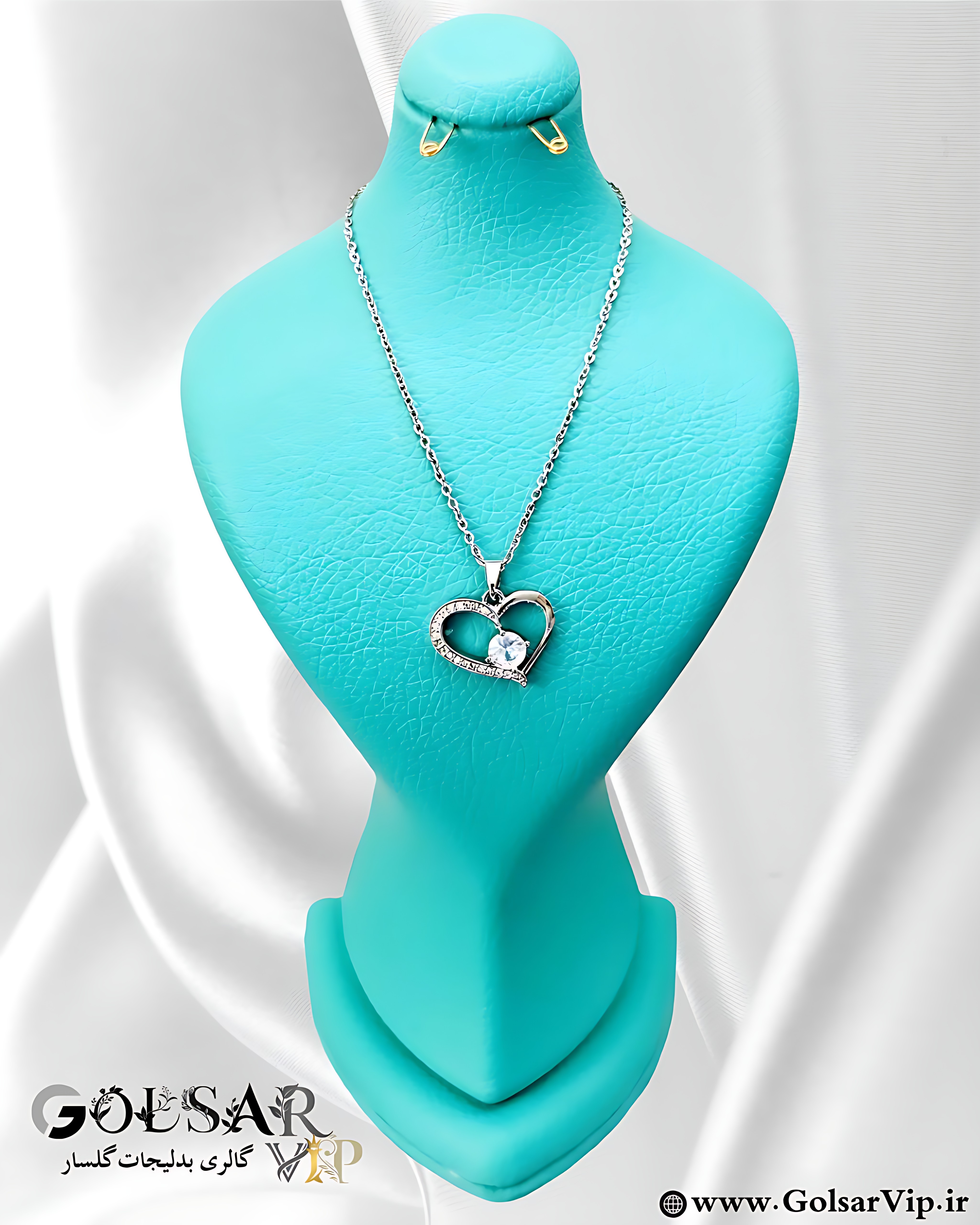 گردنبند استیل قلب نگین براق