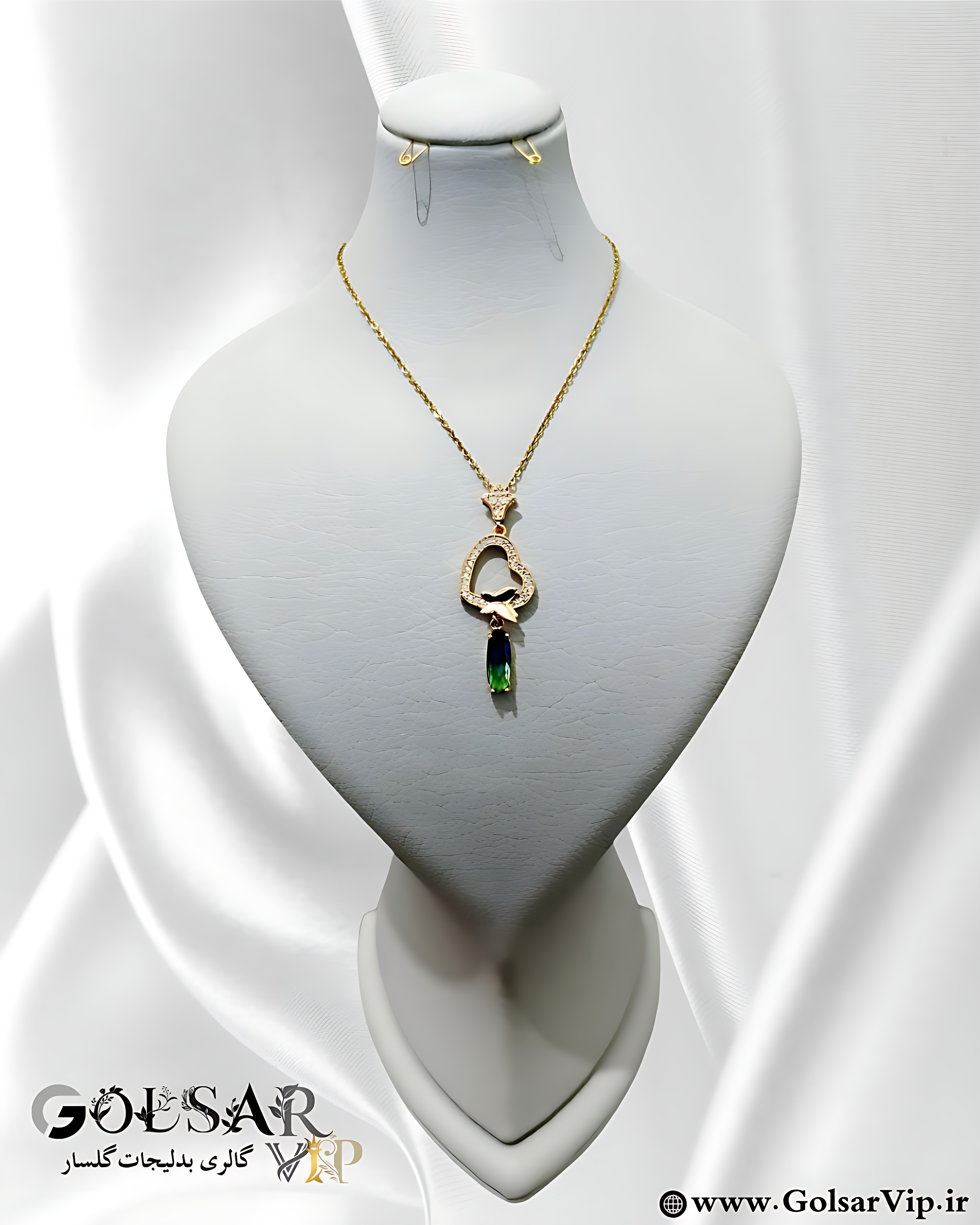 گردنبند استیل قلب کریستالی سبز